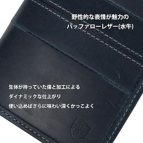 ワイルドなシボ感(革の凹凸)が特徴のバッファローレザー(水牛革)を使用した長財布。