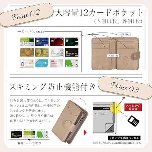 小さいバッグにも余裕で入るのに、カードが15枚も入るなんて!小銭入れもガバッと開いて使いやすいし、外側のポケットにICカードを入れれば改札もスムーズ。キーチェーン付きなのも地味に便利な嬉しいポイント!