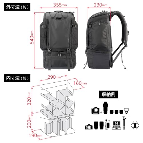 撮影機材も私物もたっぷり収納できる大容量!サイドアクセスでカメラを素早く取り出せる機動性も魅力。アクティブなフォトグラファーの強い味方です。