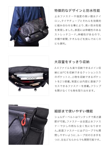 抜群の耐久性と防水性: なんといっても最大の特徴は、主素材である廃タイヤチューブ。本来過酷な環境で使われる素材なので、非常に頑丈で水に強いのが魅力です。突然の雨やアクティブなシーンでも安心して使えます。
