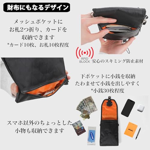 財布機能も備え、スキミング防止素材も搭載。iPhone 15 Pro Maxなどの大型スマホも収納可能で、アウトドアから普段使いまで、あらゆるシーンで注目を集めること間違いなしのアイテムです。