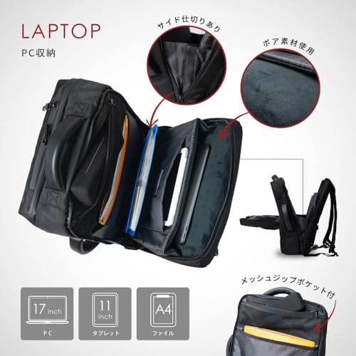 - 特徴: PC収納(16インチ)、防水ポケット、完全脱着式サコッシュ