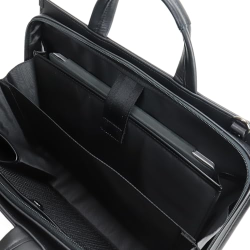 電車通勤の最適解。薄マチ(9cm)なので、満員電車でも前抱えしやすく邪魔になりません。サフィアーノ調のレザー(合成皮革)が高級感を出し、スーツスタイルを格上げします。