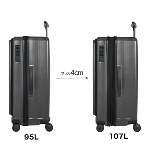 95Lの大容量でも、フロントオープンのおかげで荷物の整理がラクラク!拡張すれば最大107Lに。これだけの容量と機能を兼ね備えながら、驚くほどスムーズに動くキャスターは感動ものです。