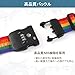 遠くからでも一目でわかる虹色のデザインが特徴。ワンタッチ式で簡単に装着でき、長さも調節可能です。シンプルなスーツケースのアクセントとして、また取り違え防止の目印として絶大な効果を発揮します。