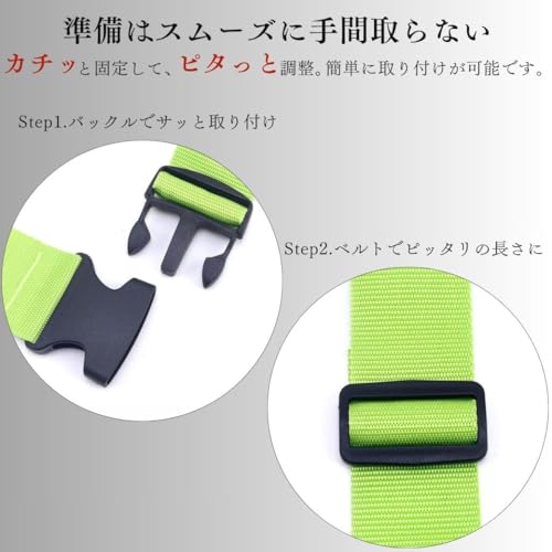 「Leiskya」のこのベルトは、TSAロックと3桁ダイヤル式ロックを備えた、シンプルで使いやすいI字型モデルです。長さは約60cmから200cmまで調整でき、幅広いサイズのスーツケースに対応。高耐久ポリエステル素材を使用しており、軽量ながらもしっかりと荷物を固定します。